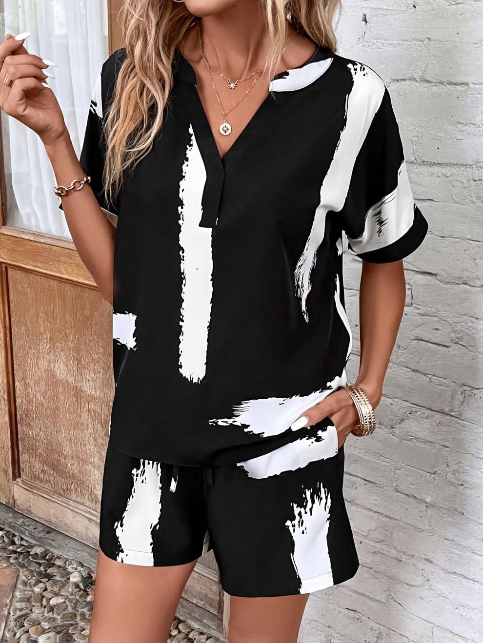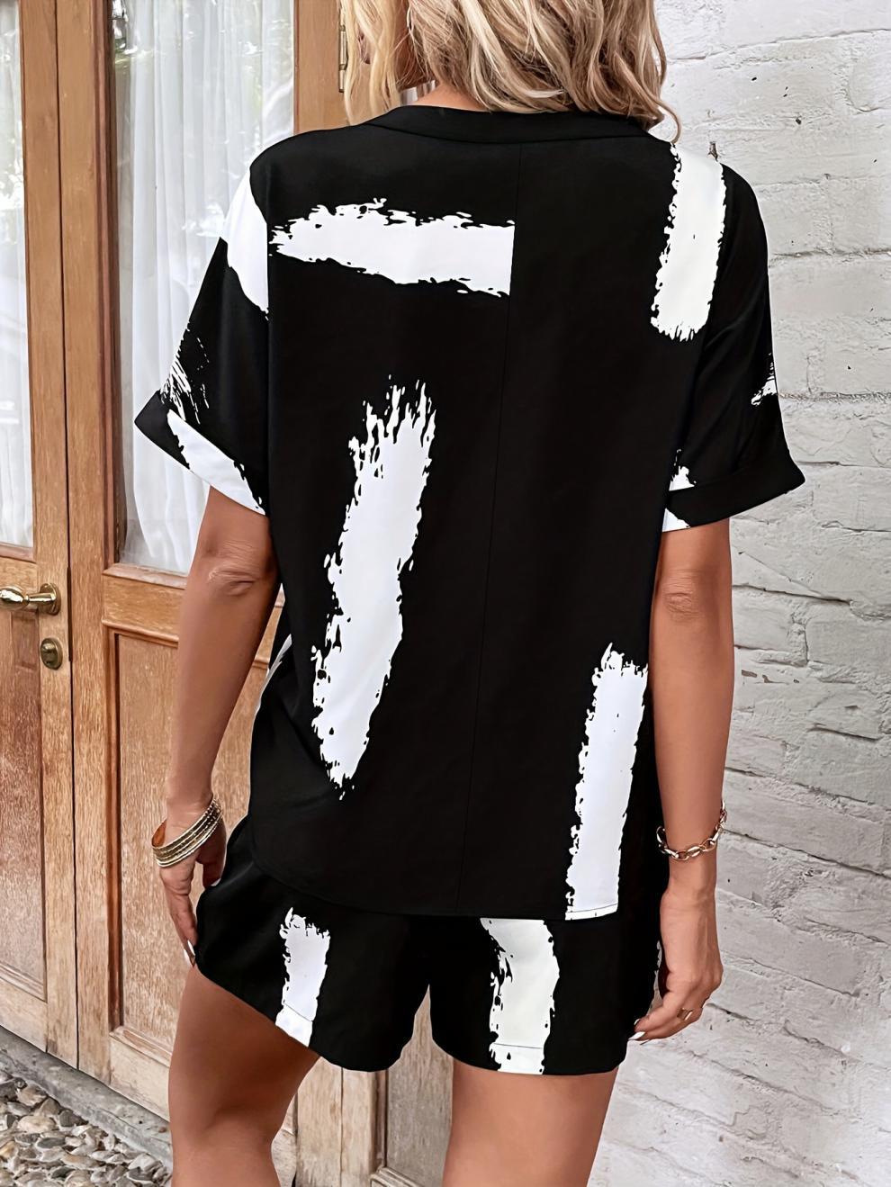 Black/white button suit-D671