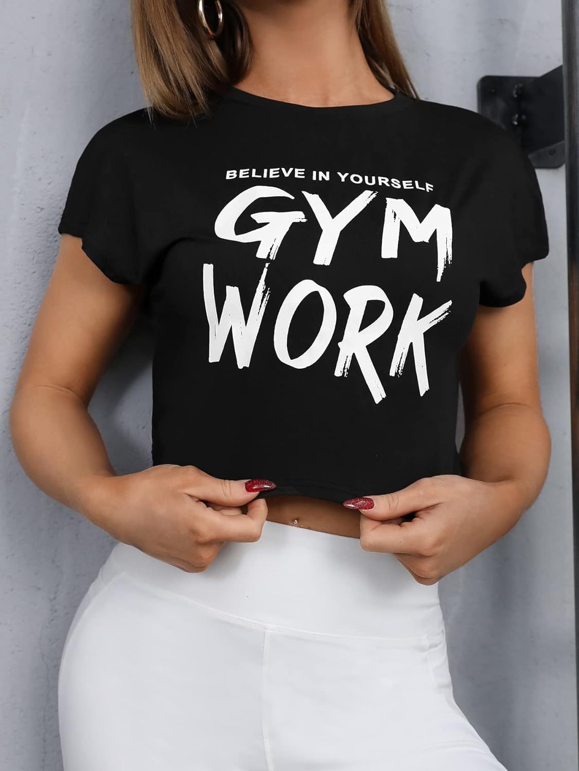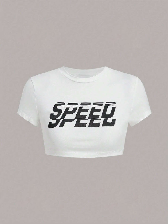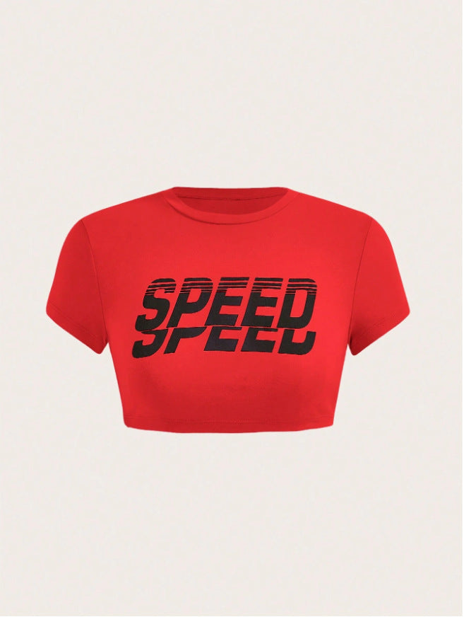 Letter print sport top-D384