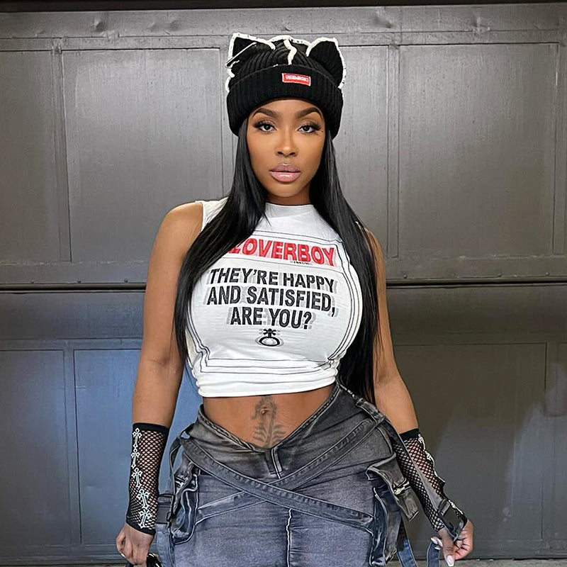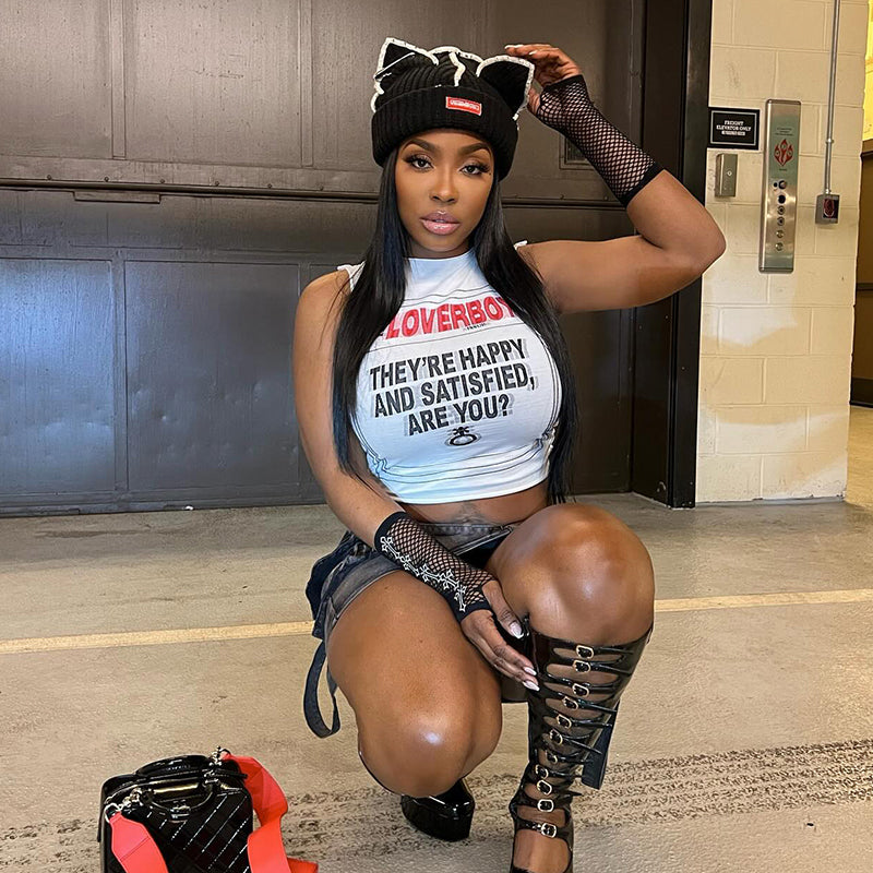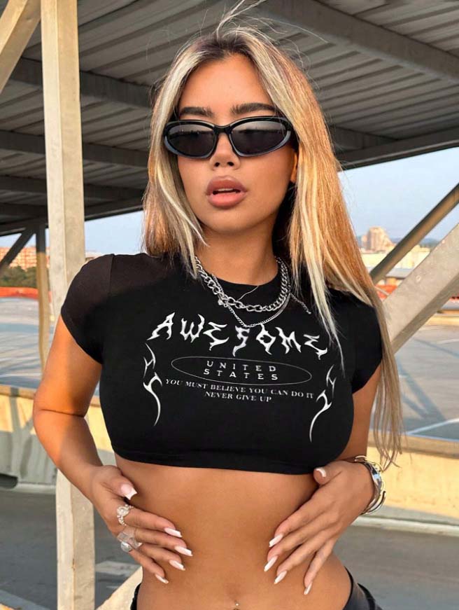 Lettering print cropped top-D810