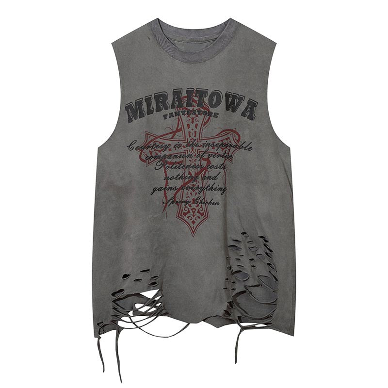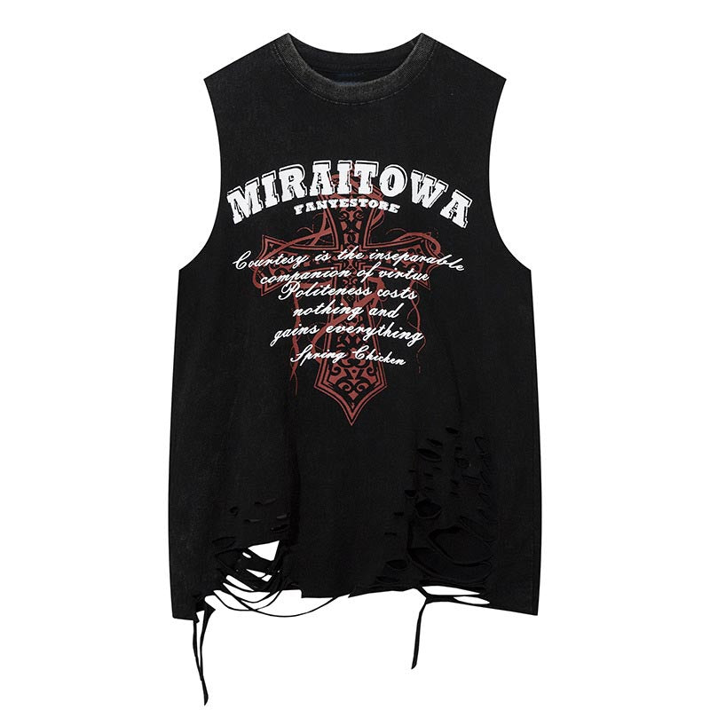Letter ripped vest-D736