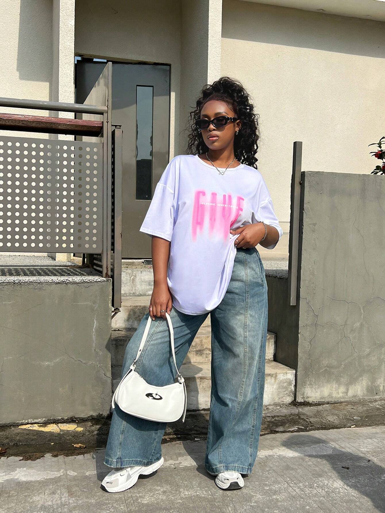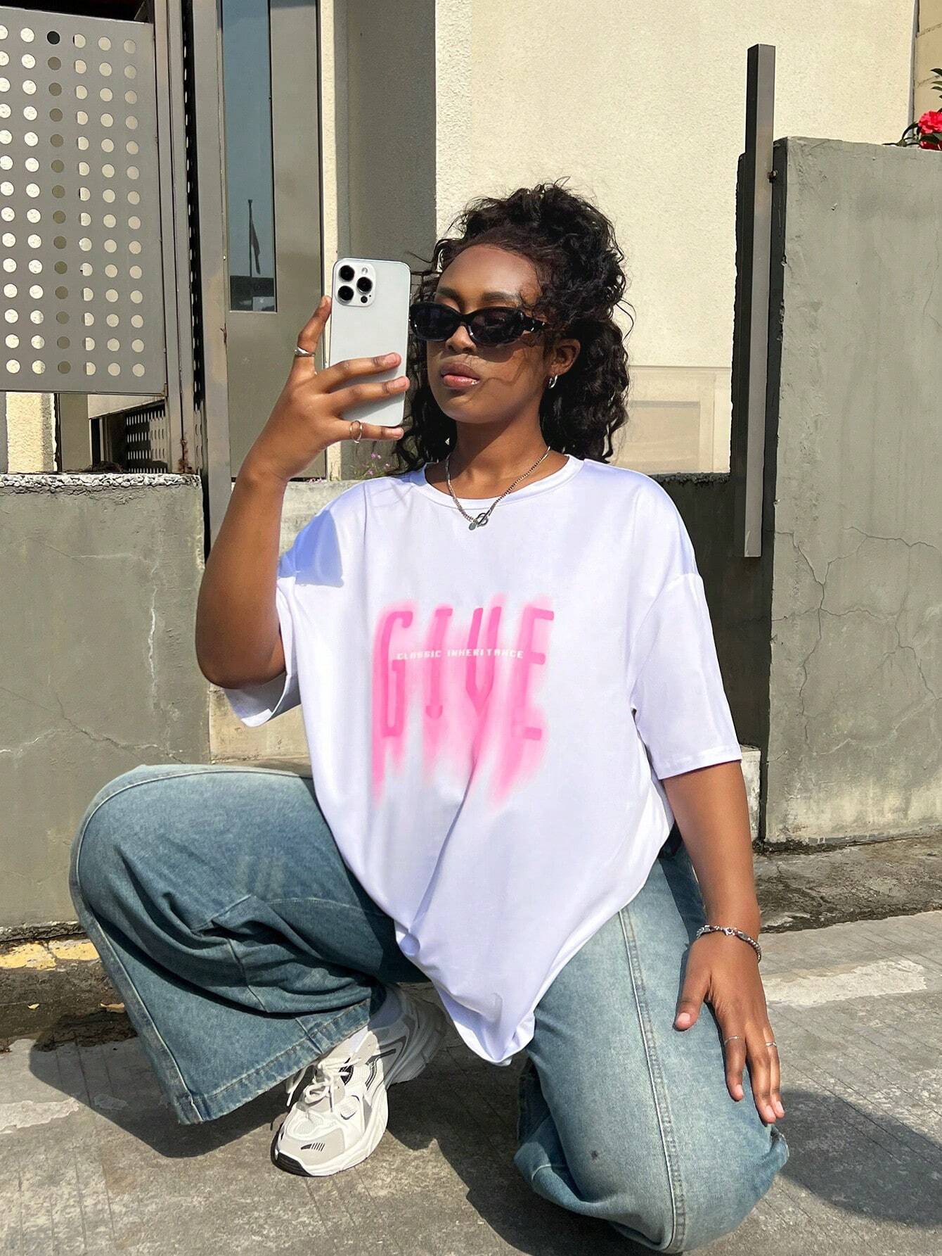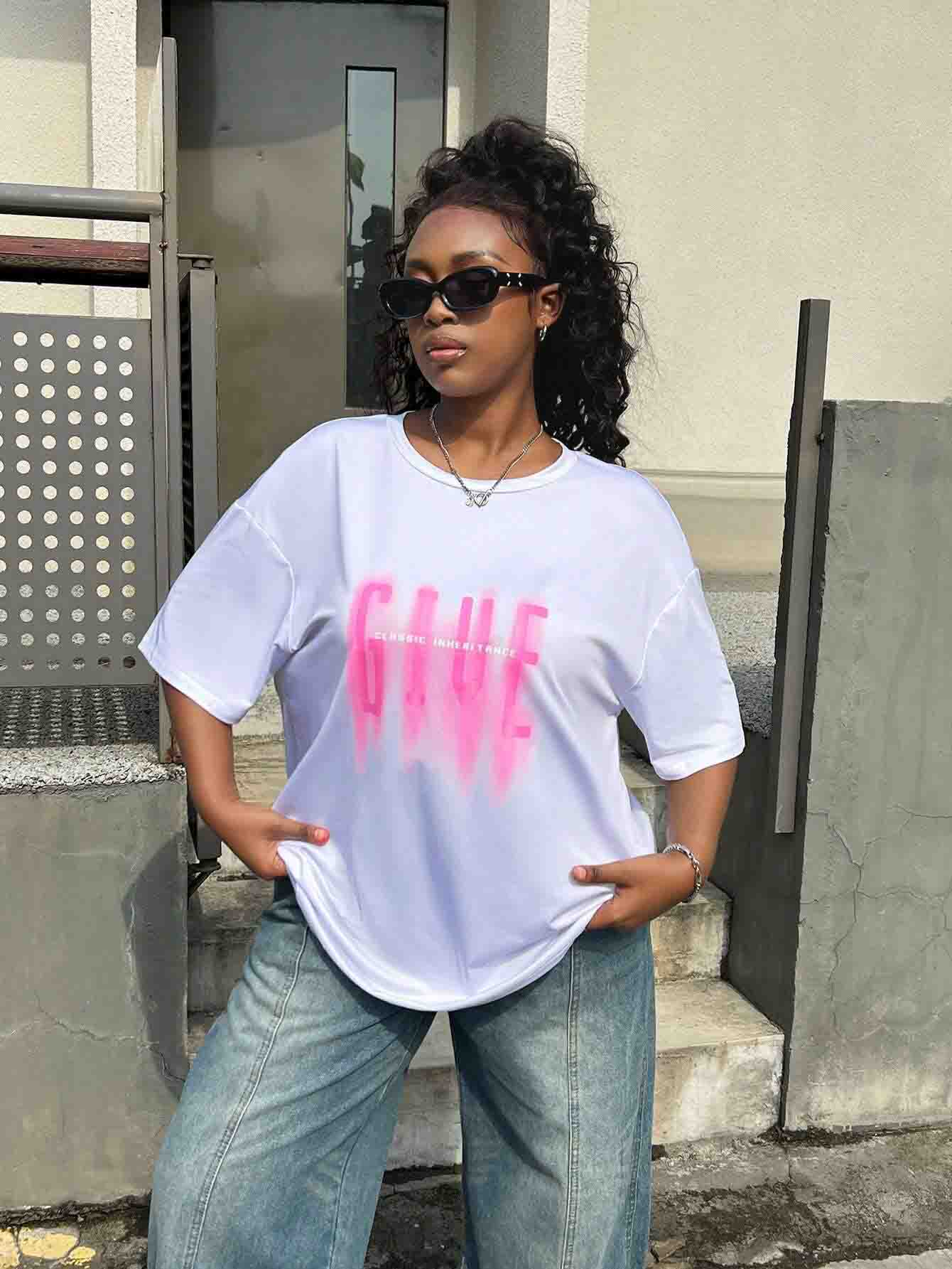 Letter print cartoon trend TEE-D399