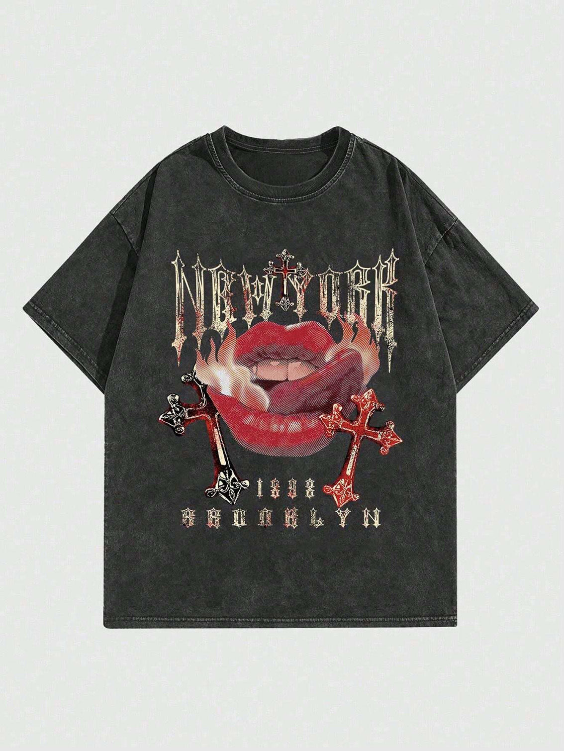 Letter print cartoon TEE-D398